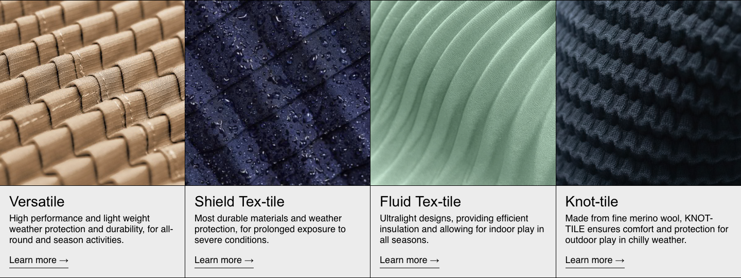 Trasladando estos principios al campo del diseño de moda, Yasin ha creado prendas que se adaptan dinámicamente al cuerpo en crecimiento de los niños, combinando la innovación tecnológica con la funcionalidad cotidiana. Las prendas están confeccionadas con un tejido ripstop patentado que es ligero pero resistente, y ofrece elasticidad, comodidad y durabilidad. La superficie suave garantiza un tacto agradable sobre la piel, mientras que la estructura técnica permite libertad de movimiento para jugar, correr o trepar.